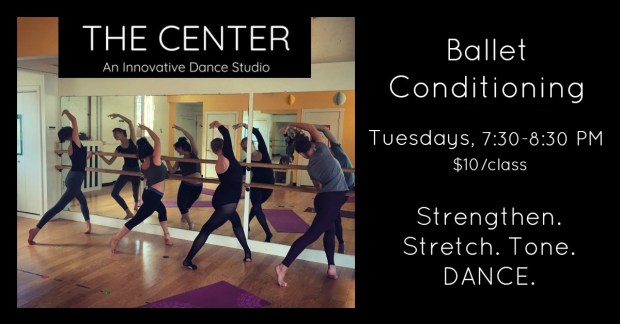 Ballet Conditioning: A ballet workout designed to develop core strength, lengthen muscles, improve posture and increase stamina. Barre exercises provide a meditative strengthening and toning routine, while center work offers an opportunity for low-impact, feel-good cardio dance. No prior dance experience necessary!