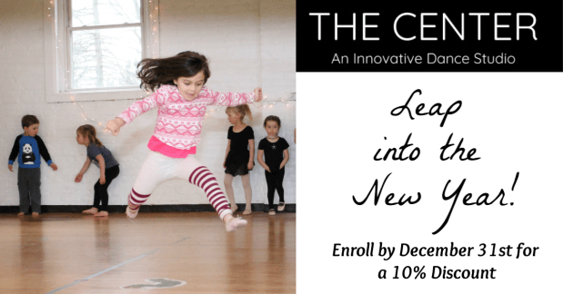 The Center Dance Studio offers classes of all types to dancers of all ages: caregiver-and-me, creative movement, ballet, hip hop, choreography and fitness. Whether you’re just learning to hop or perfecting your pirouette, The Center Dance will keep you warm, happy and healthy all winter long.
