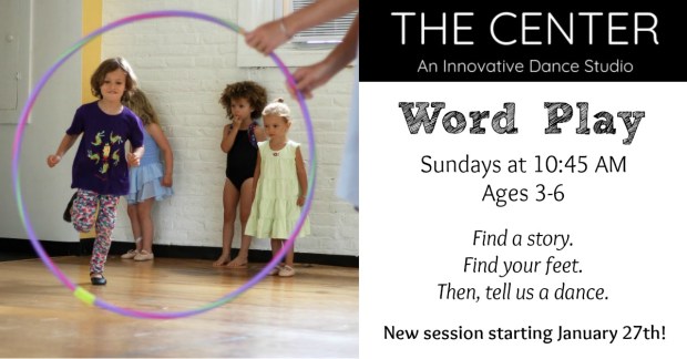 Word Play (45 minutes, ages 3-6) In this 45 minute class, students leap, prance and spin their way through the world of children’s literature. Using picture books, fairy tales and poetry, children are introduced to the fundamentals of creative movement and narrative dance. Whether they’re twirling down their own Purple Crayon path, pouncing at the Wild Rumpus, or dancing the alphabet, kids will love this interactive class that honors the reader, and storyteller, in all of us.