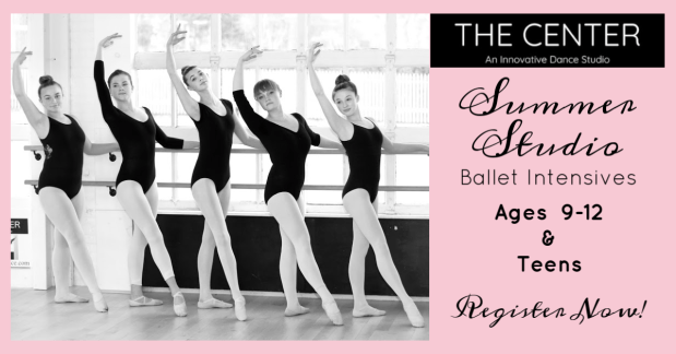 This summer at The Center Dance Studio: 4 weeks of ballet intensives for children ages 9-12 and teens. Our exciting program allows students to continue a rigorous course of study over the month of July, offering daily ballet technique classes, repertory and choreography, complemented by introductory classes in modern, jazz and hip hop.