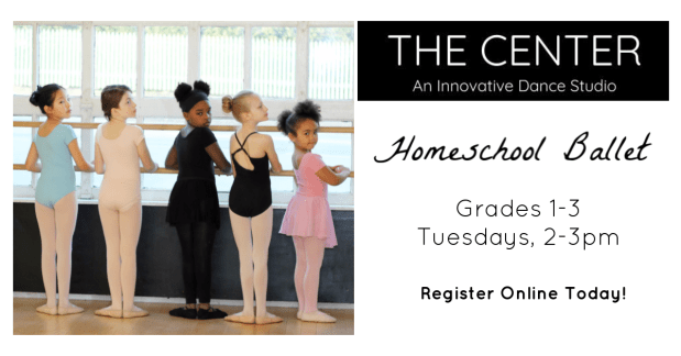 The Center is pleased to offer a brand new class for Homeschool students this fall! Open to children entering grades 1-3, this class will be held Tuesdays from 2-3pm. The same rigorous (and fun!) Ballet 1 curriculum as we’ve always offered, now available during traditional school hours.