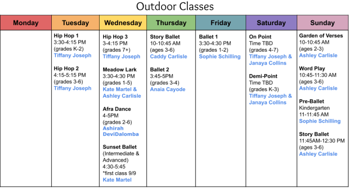 Our first 8-week fall session begins Sunday, September 13th. Register through our Square Store or via email; but don’t delay! Many of these classes will fill up quickly.
