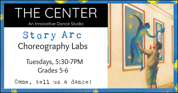 Story Arc (1.5 hours, grades 4-6) offers a creative approach to building dances in this lab that grounds students in composition through technical and improvisational activities. Using literature and their own writing as a platform for exploration, students will explore concepts such as formation, relationship, effort and action as they are introduced to a wide variety of choreographic tools. Students will work collaboratively and independently to structure original dances that are rich, meaningful and inspired.