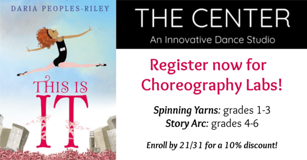 Register now for The Center’s Winter/Spring ‘19 Choreography Labs! Students in Spinning Yarns (grades 1-3) and Story Arc (grades 4-6) will create dances, costumes, and sets for The Center’s 4th annual spring show, based on Daria Peoples-Riley’s inspiring picture book, This Is It.